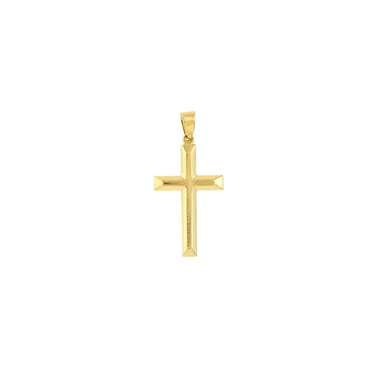 14K Solid Gold Classic Beveled Edge Cross Pendant
